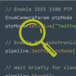 Schluss mit dem unübersichtlichen Code, der die langfristige Zuverlässigkeit Ihrer Produktionslinien beeinträchtigt. Nutzen Sie die Hochgeschwindigkeits-Flächen- und Zeilenkameras von Emergent für Ihre Inspektionsalgorithmen. Mit eSDK Pro können Sie die Auslösung sequenziell steuern und so wichtige Ereignisse und Qualitätskennzahlen in Echtzeit überwachen.